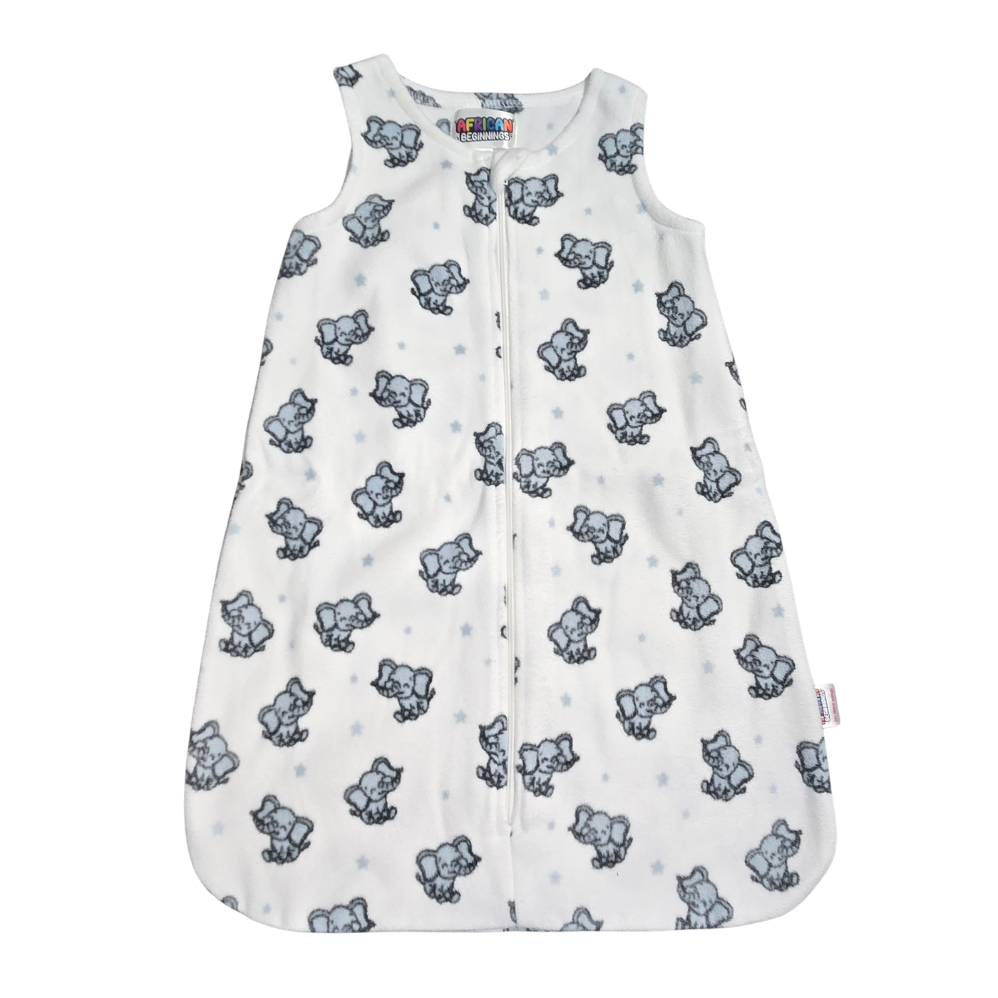 NWOT | African Beginnings Baby Fleece Sleep Sack | Artistic Elephant & Stars Motif | Cloud White & Sky Blue | 0-6 Months