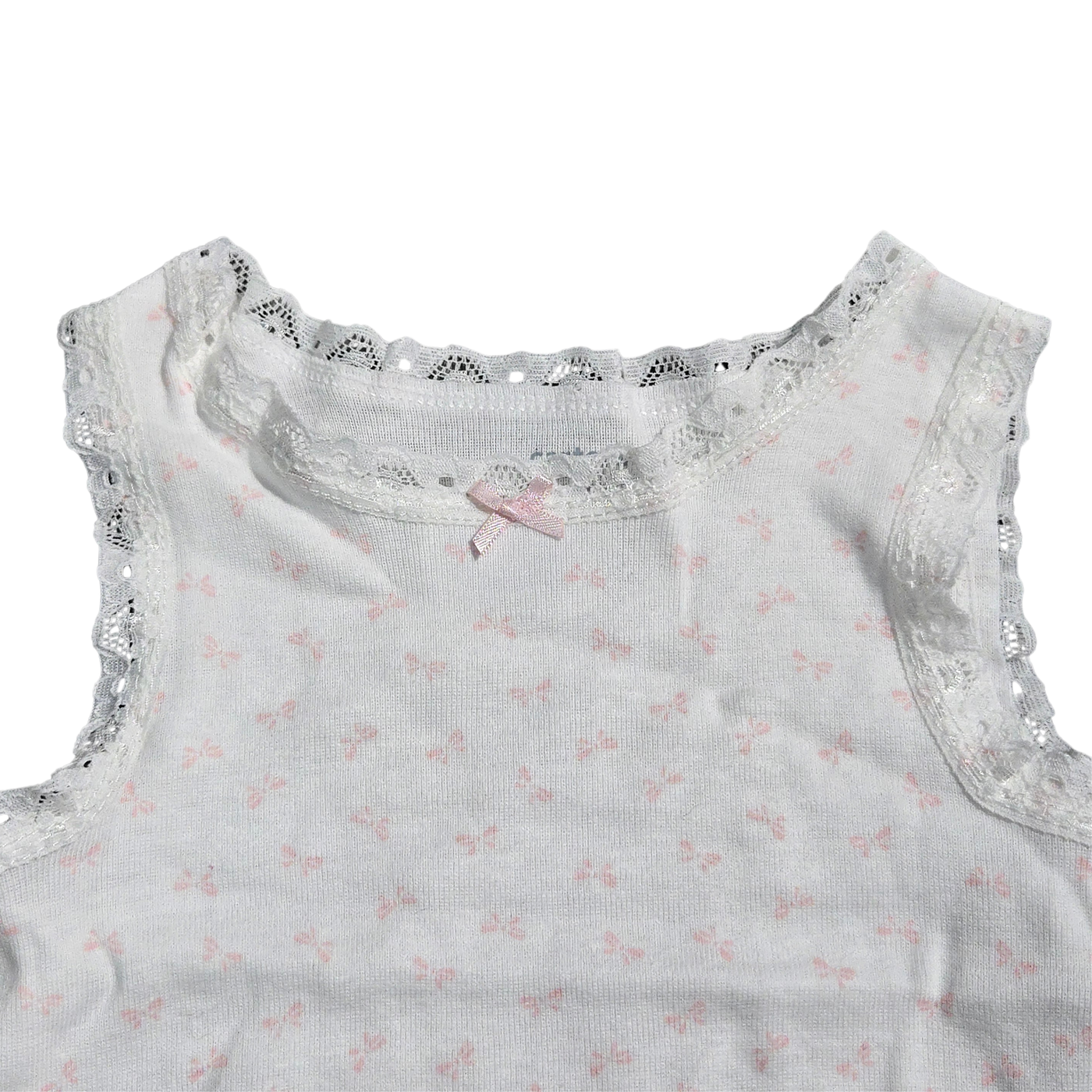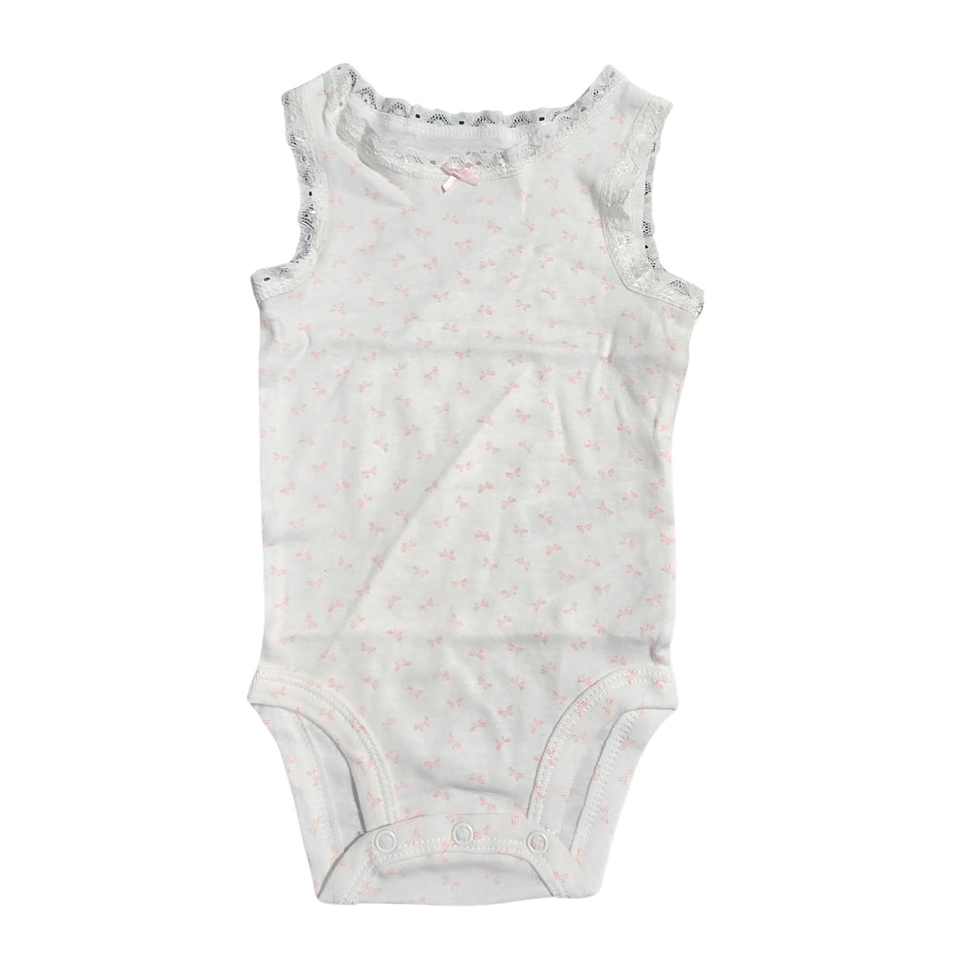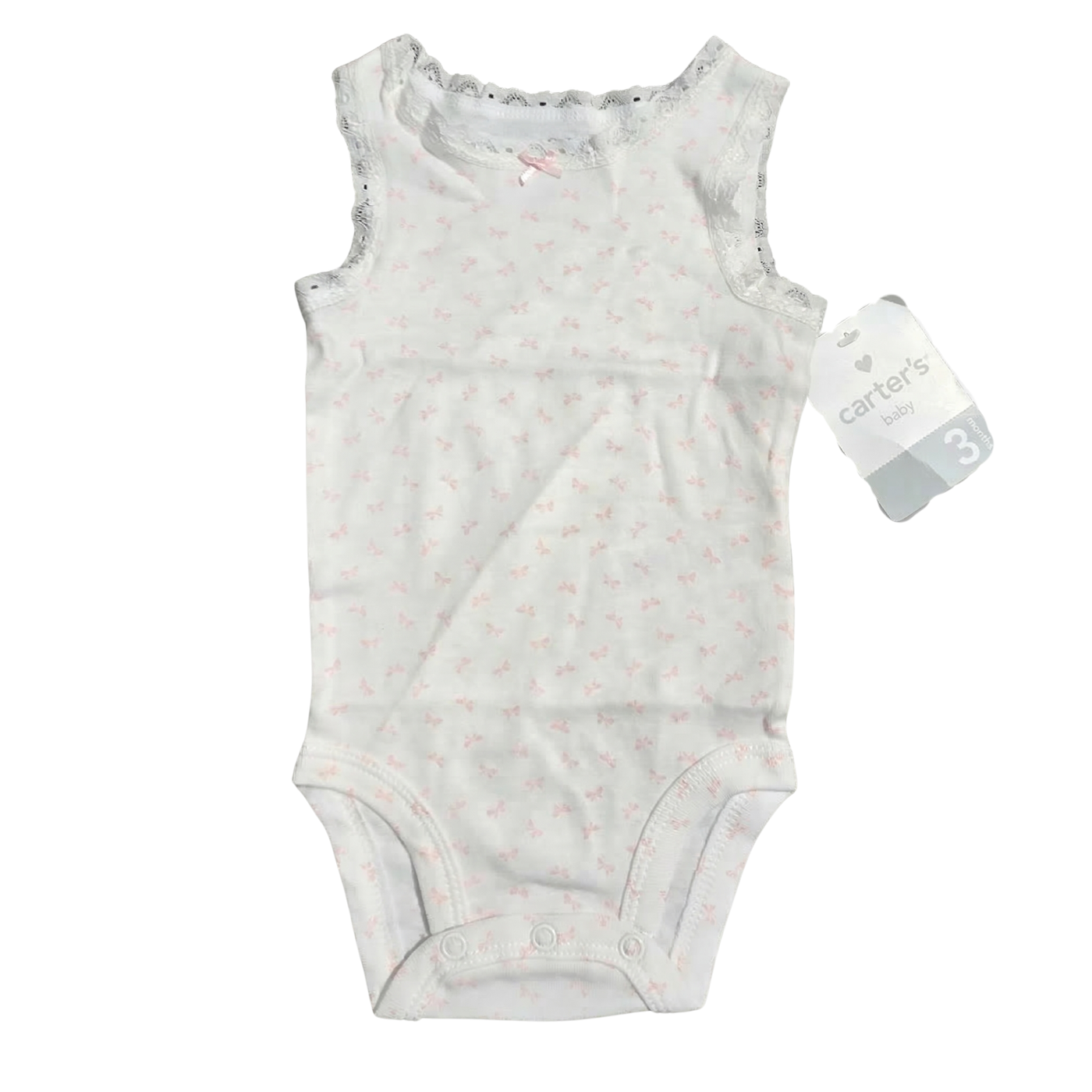 NWT | Carter's Baby Girl Bow Print Sleeveless Bodysuit | Artistic Lace Trim Motif | White & Pink | Size 3 Months