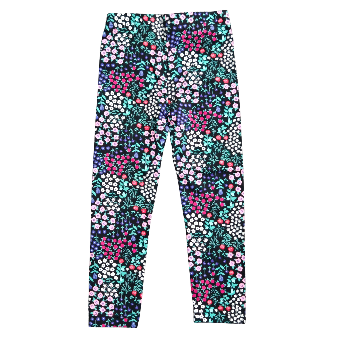 Brighten up your little one's wardrobe with these adorable floral print leggings from Carter's. These leggings feature a vibrant all-over botanical pattern with pink, blue, and white flowers on a classic black background, making them easy to pair with any favorite top. Designed for all-day play, they boast a comfortable elastic waistband and a soft, high-stretch knit fabric that allows for a full range of motion. Whether it's for a day at preschool or a family outing, these durable and stylish leggings offer the perfect blend of comfort and charm. 2T.