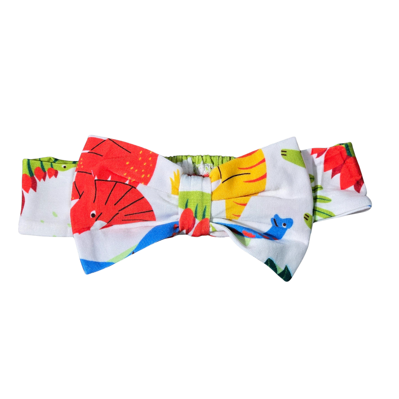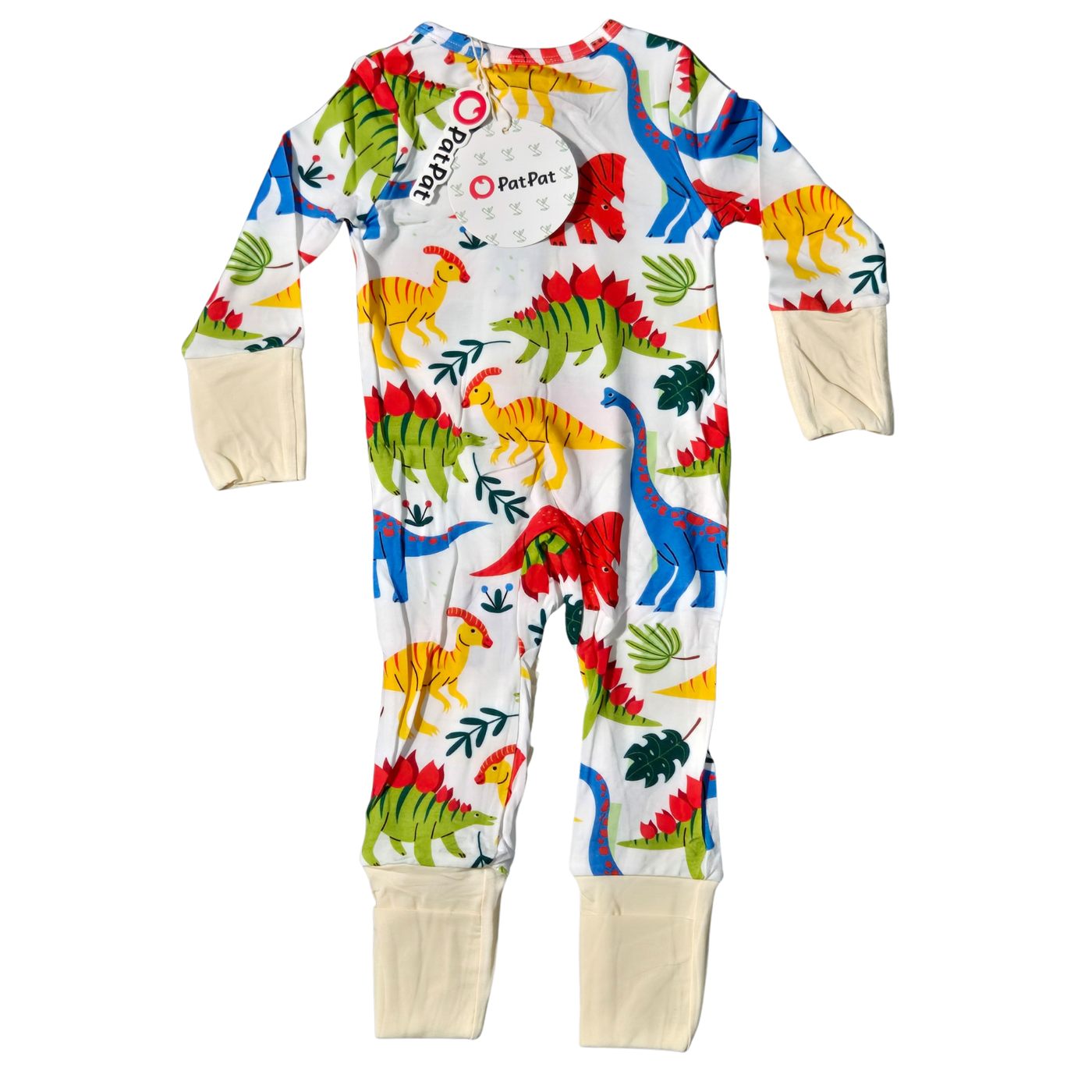 • Print: Multi-color dinosaur pattern featuring triceratops, stegosaurus, and long-neck dinos