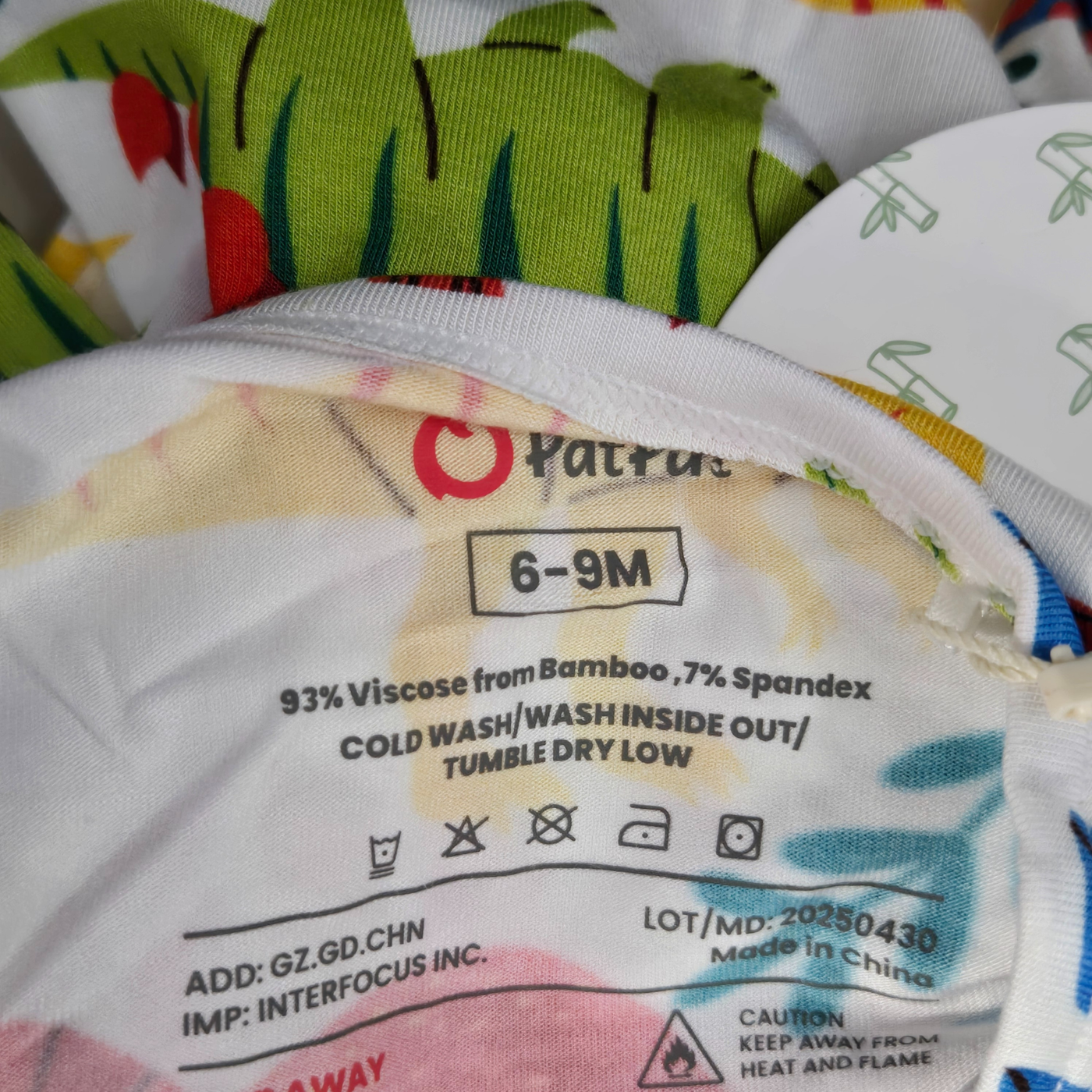 Dress your little one in ultimate comfort with this vibrant PatPat onesie set. Featuring a colorful allover print of various dinosaurs, this romper is crafted from a premium blend of 93% Viscose from Bamboo and 7% Spandex, offering a buttery-soft feel that is gentle on sensitive skin. The design includes sweet ruffle detailing along the zipper, fold-over mitts and footies for extra warmth, and a matching bow headband to complete the look. 6-9M.