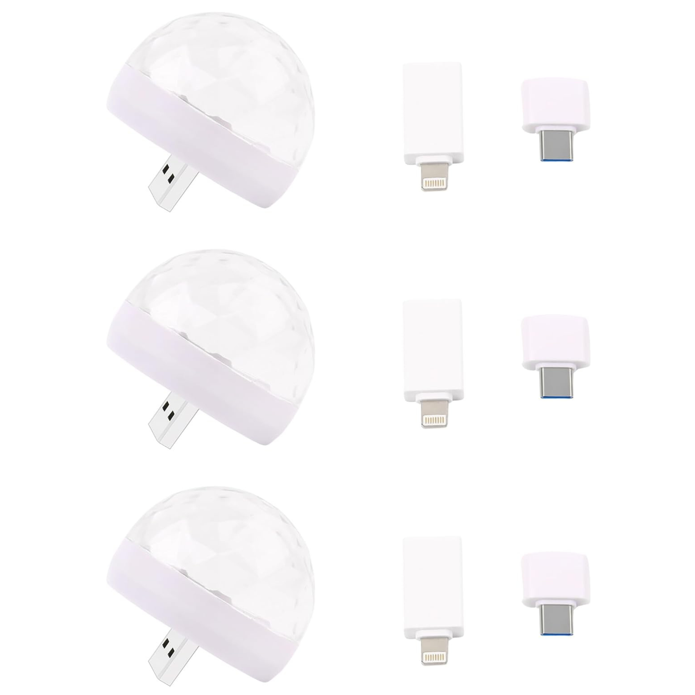 • Universal USB Compatibility: Designed for convenience, this disco ball light is compatible with most USB interface electric appliances. It comes with two different adapters – Adapter for iPhone and Type-C Adapter – allowing you to plug it into a wide range of devices such as smartphones, PCs, laptops, mobile power supplies, microphones, and Bluetooth speakers.