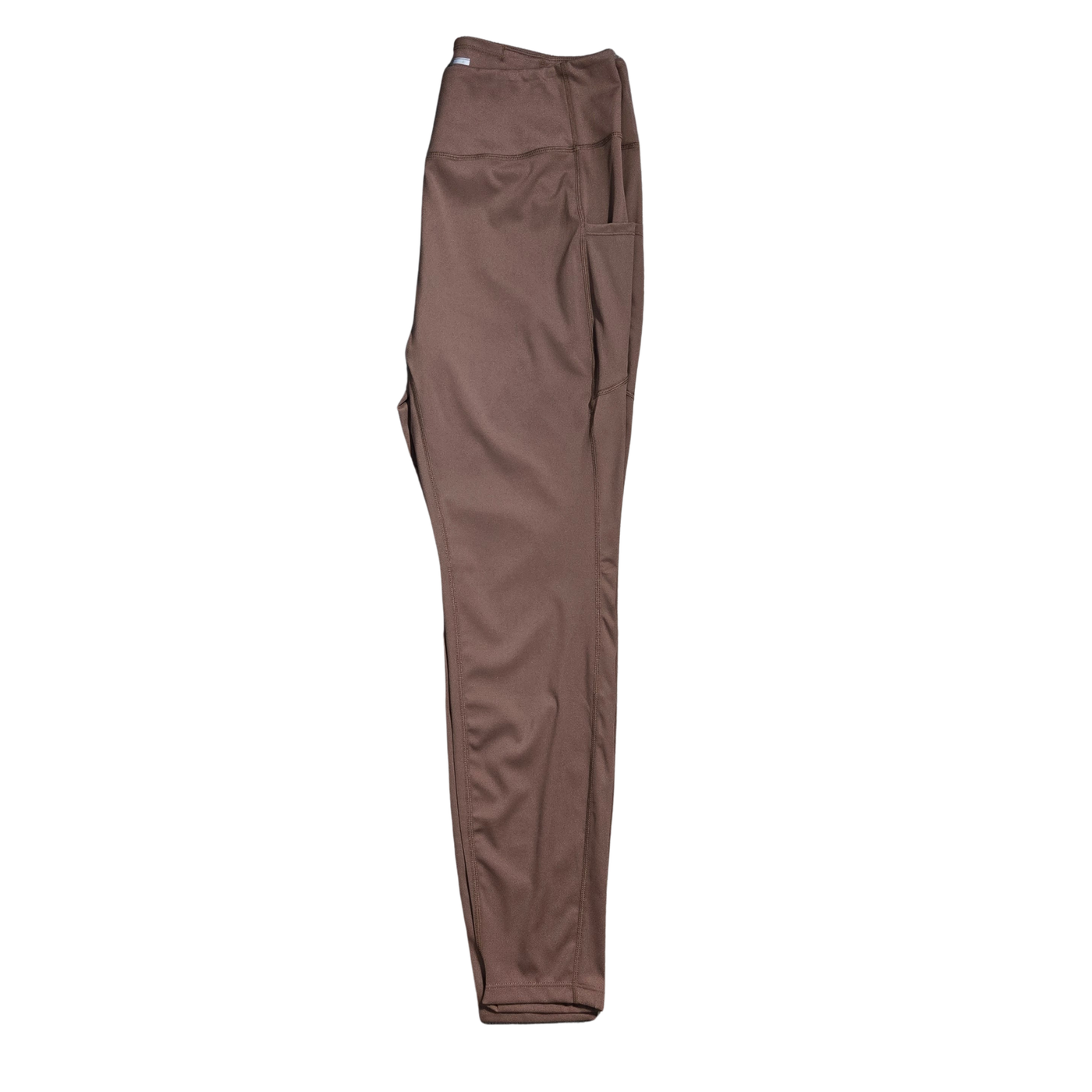 Elevate your activewear rotation with these high-performance leggings, designed to provide the perfect blend of compression and effortless style. Rendered in a sophisticated mocha brown, this modern essential features a flattering high-rise waistband that offers a secure, stay-put fit during high-intensity workouts or daily errands. For maximum utility, these leggings are engineered with deep dual side pockets, perfectly sized to safely stow your smartphone, keys, or cards while on the move. The design is finished with ergonomic flatlock seams intended to reduce chafing and provide a streamlined, athletic profile. Crafted from a premium performance blend of 75% Nylon and 25% Spandex, these leggings provide a silky-soft "second-skin" feel with exceptional 4-way stretch and rapid moisture-wicking recovery. Size XL.