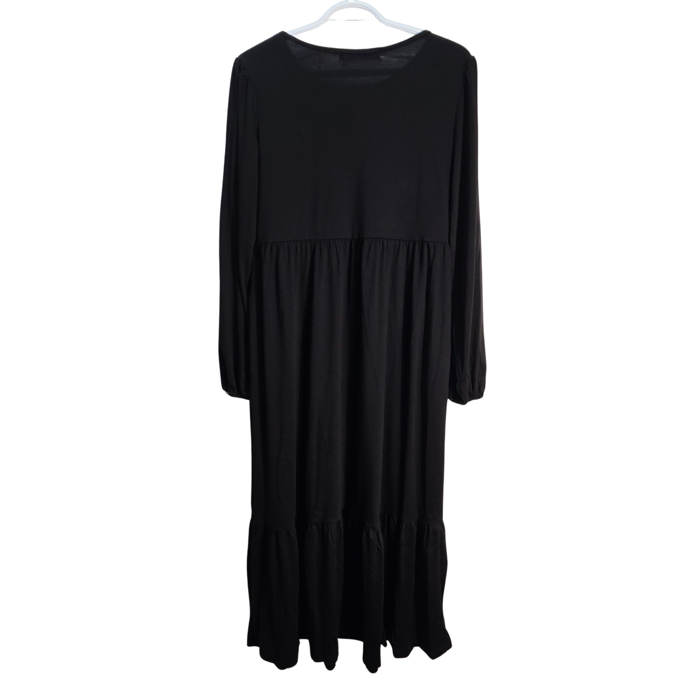 NWT | Black Long Sleeve Tiered Midi Dress | Gothic Minimalism | Medium