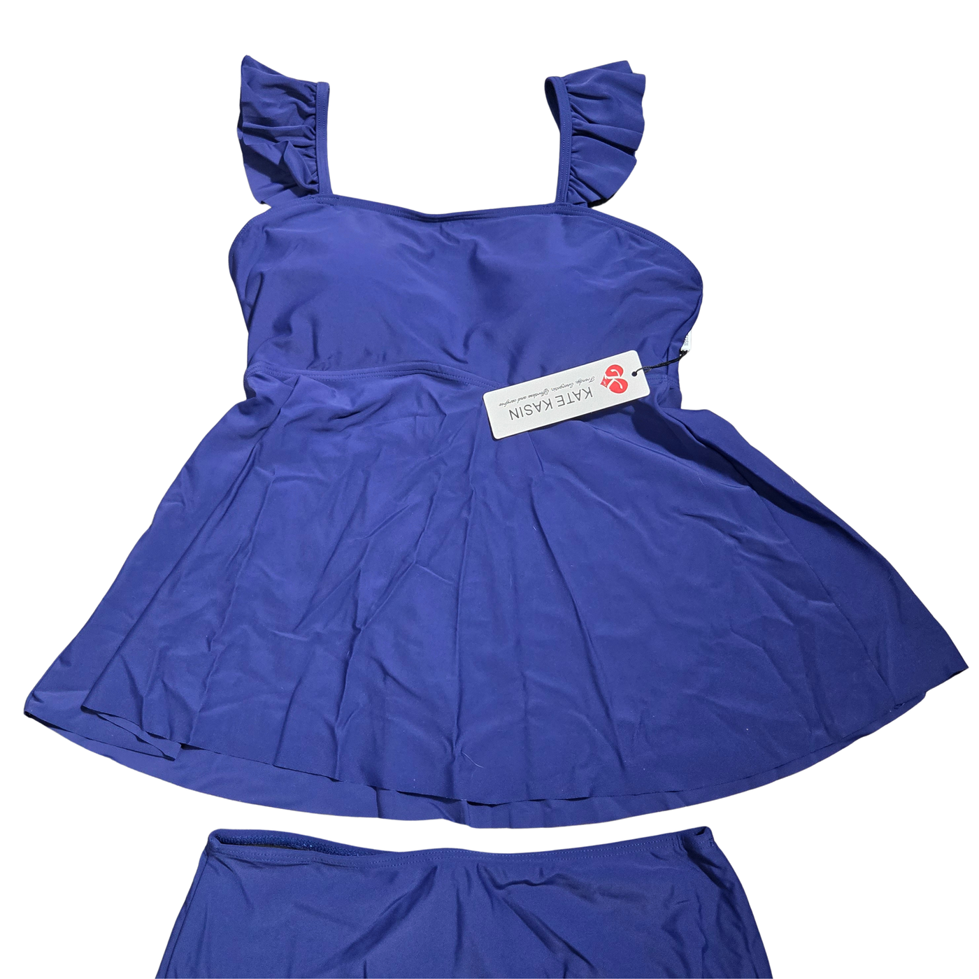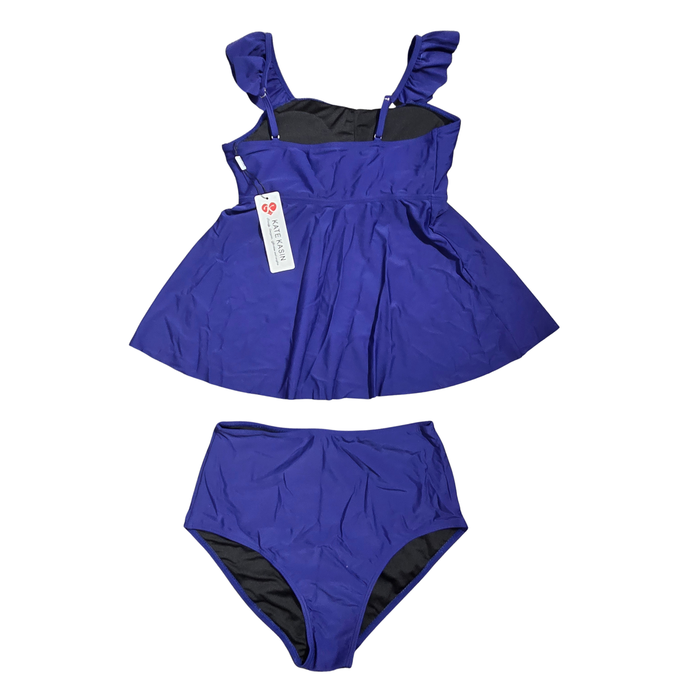 NWT | Kate Kasin Women's Ruffle Shoulder Peplum Tankini Set | Artistic High-Waisted Silhouette | Royal Blue | Small