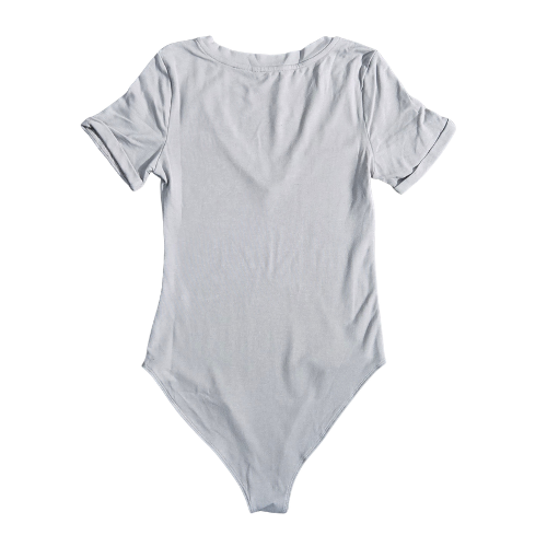 NWT | MANGOPOP Heather Gray V-Neck Bodysuit | Artistic Short-Sleeve Frame | Performance Stretch | Size X-Small