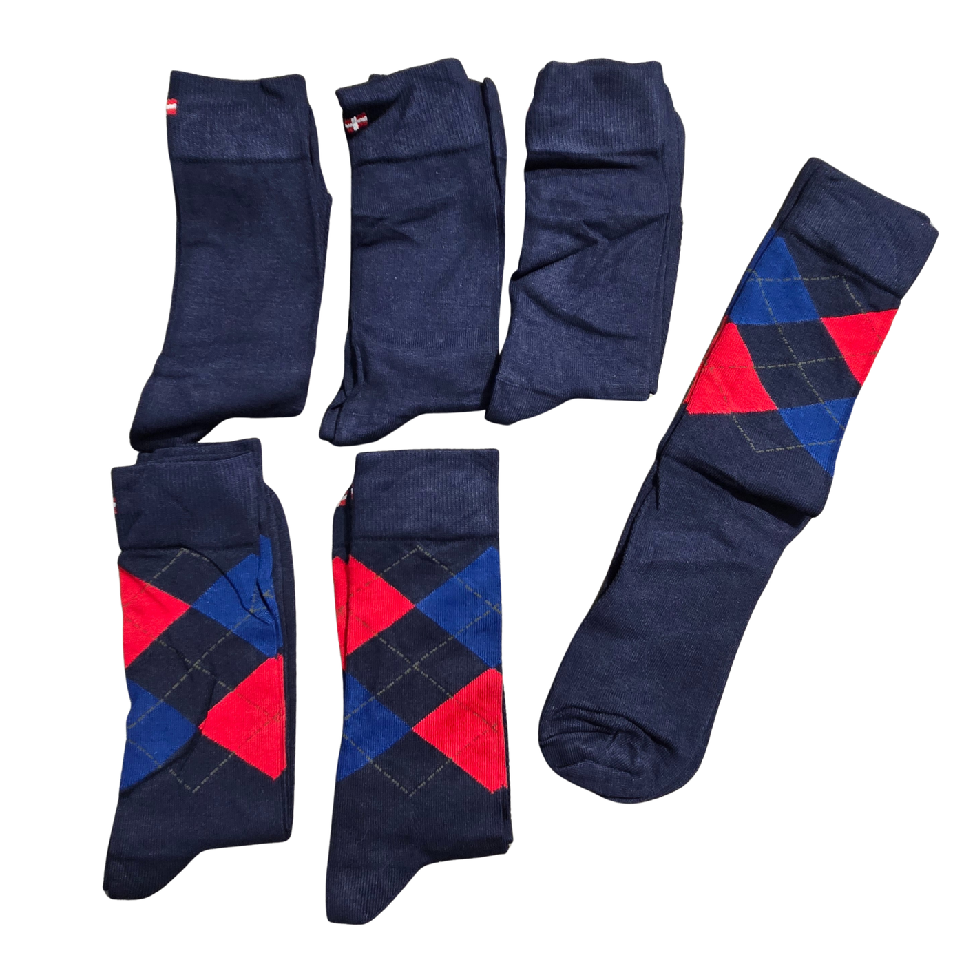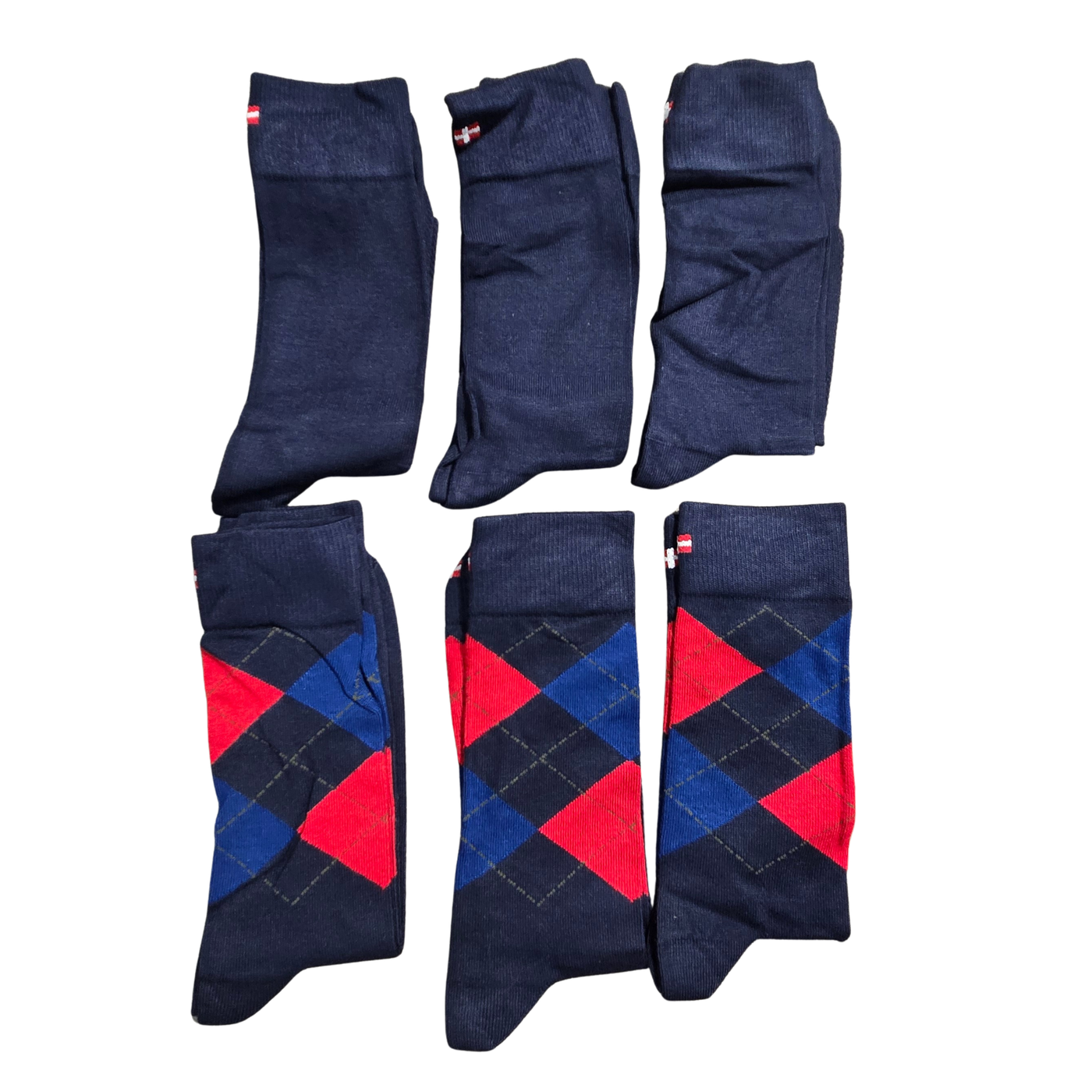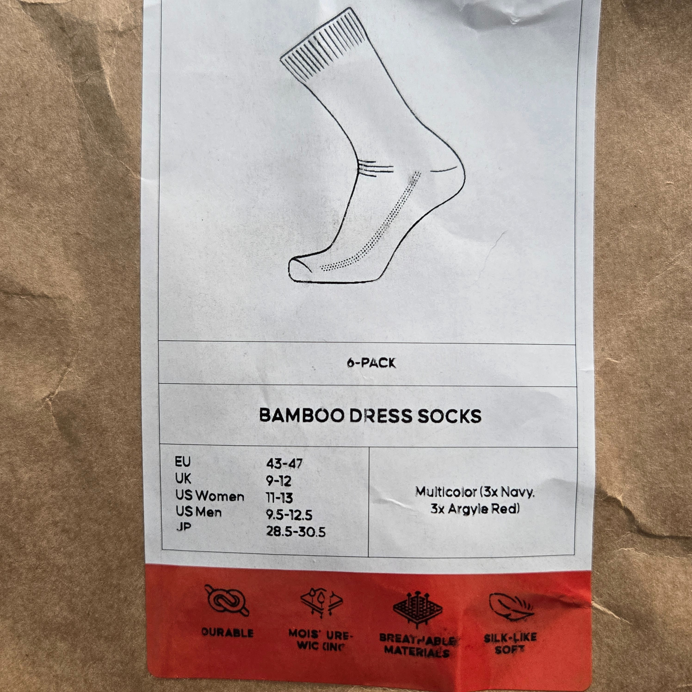 NWT | Men's 6-Pack Bamboo Dress Socks | Navy & Argyle Red | Moisture-Wicking | 9.5-12.5