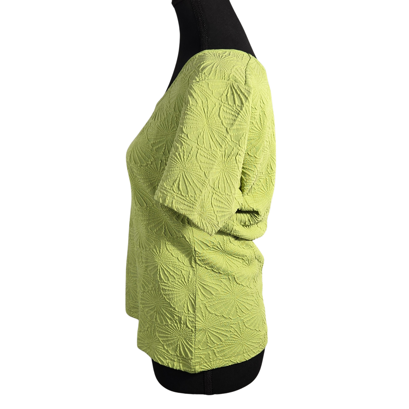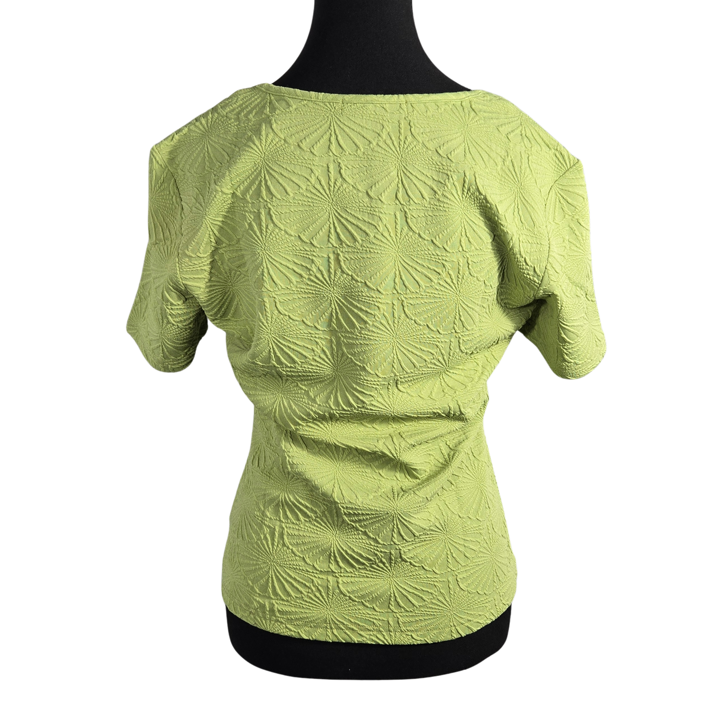 NWT | MIHOLL Women's Textured Floral Short Sleeve Top | Artistic Raised Petal Silhouette | Chartreuse Green | Size XL