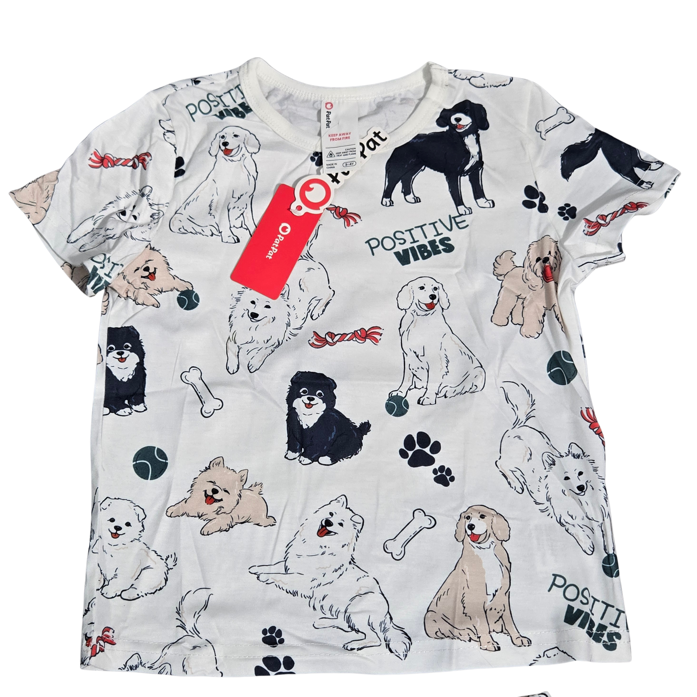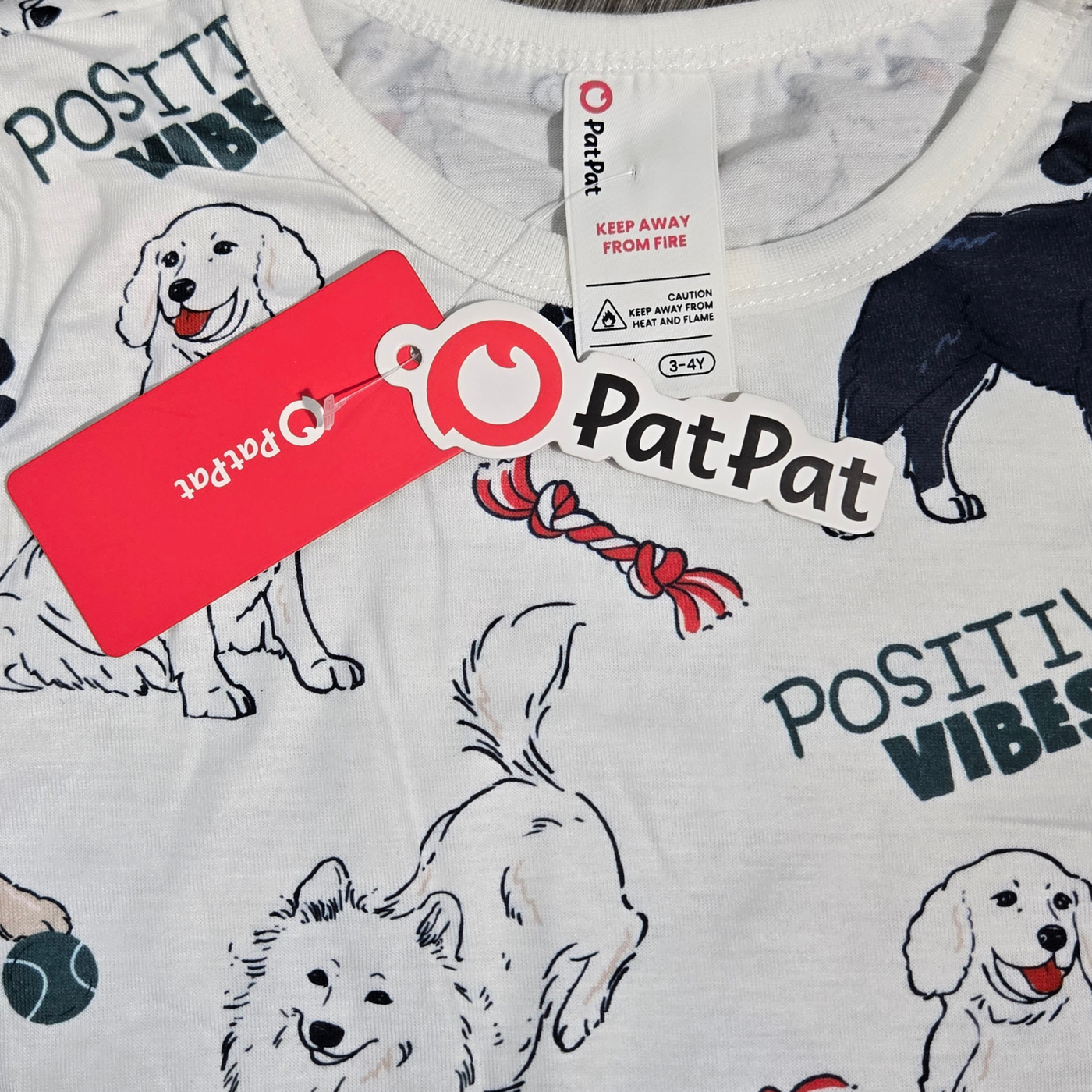 NWT | PatPat 2-Piece Dog Print Pajama Set | Shorts & Tee | Positive Vibes | 3-4Y