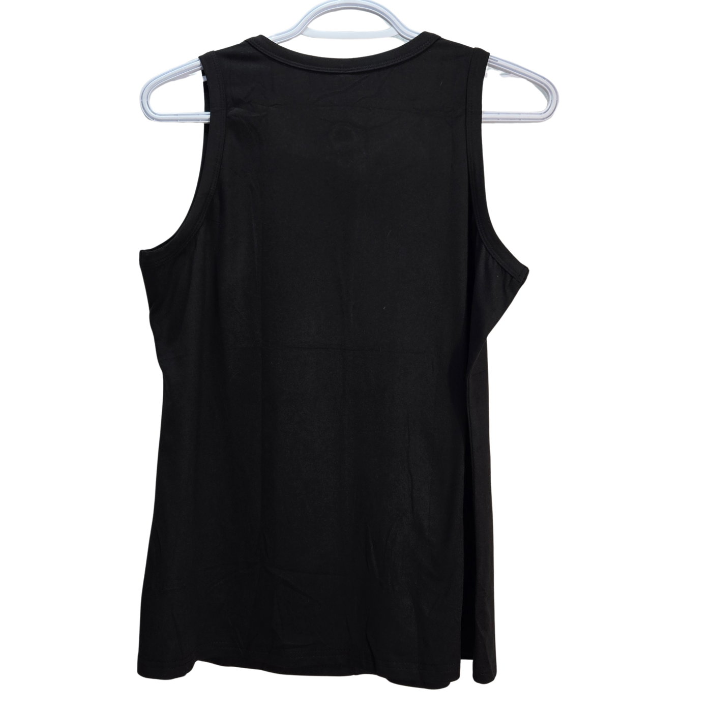 Elevate your daily rotation with this essential black tank top from RIROW. Rendered in a deep, timeless jet black, this modern essential features a classic crew neckline elevated by a sophisticated front keyhole cutout. The design is accented with a polished gold-tone ring hardware detail that adds a touch of jewelry-inspired elegance to the bodice. Designed for maximum versatility, the lightweight silhouette is engineered for a relaxed, flowy fit that pairs perfectly with high-rise denim, tailored trousers, or layered under your favorite blazer. Crafted from a high-quality soft-touch performance knit, this top provides exceptional breathability and comfortable stretch for all-day wear. Size 2XL.