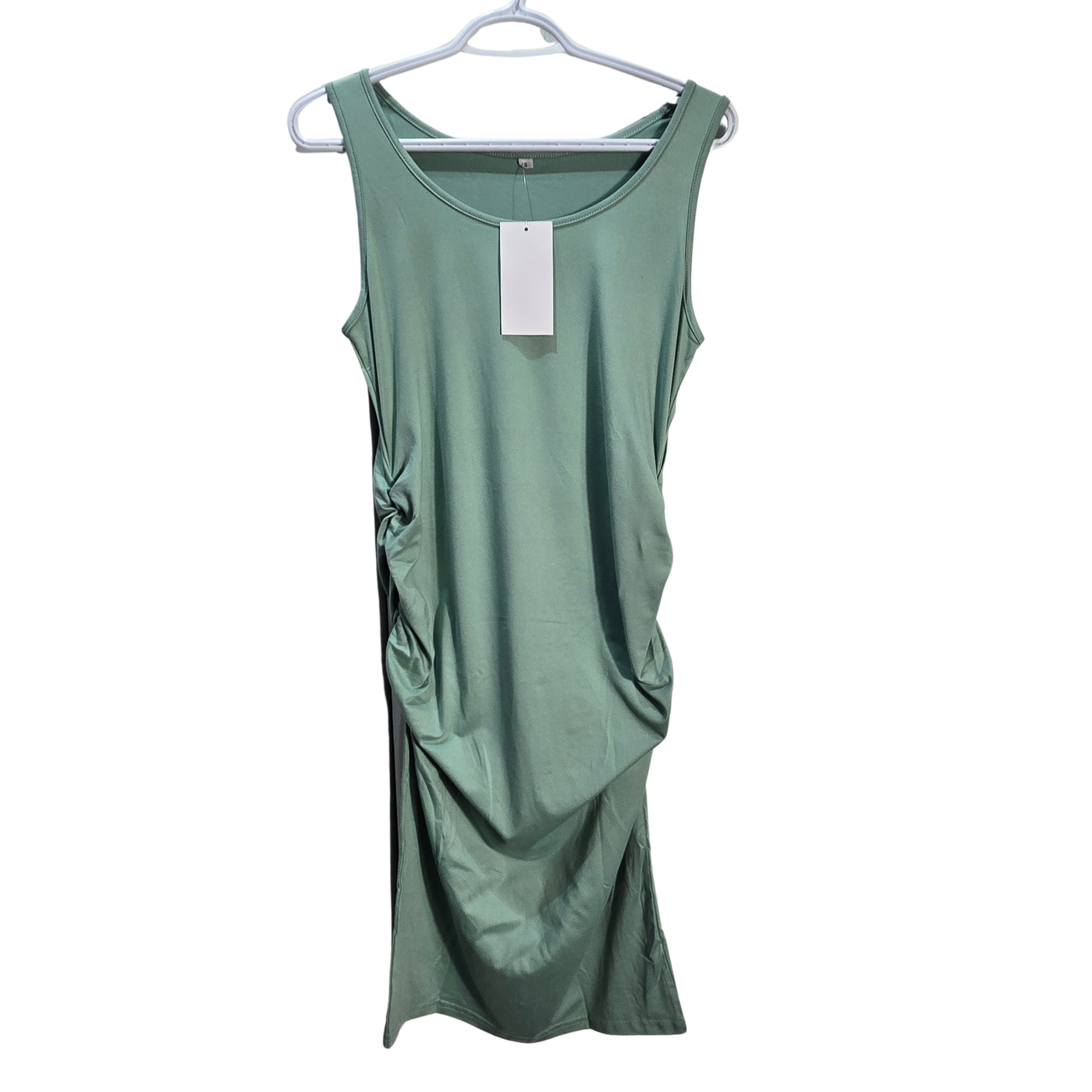 NWT | Sage Green Sleeveless Bodycon Dress | Artistic Side-Ruching Detail | Sophisticated Scoop Neck | Size Small