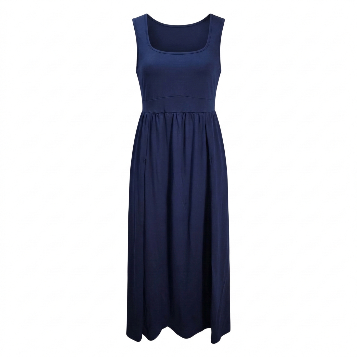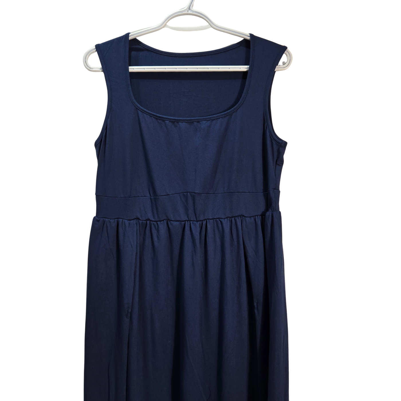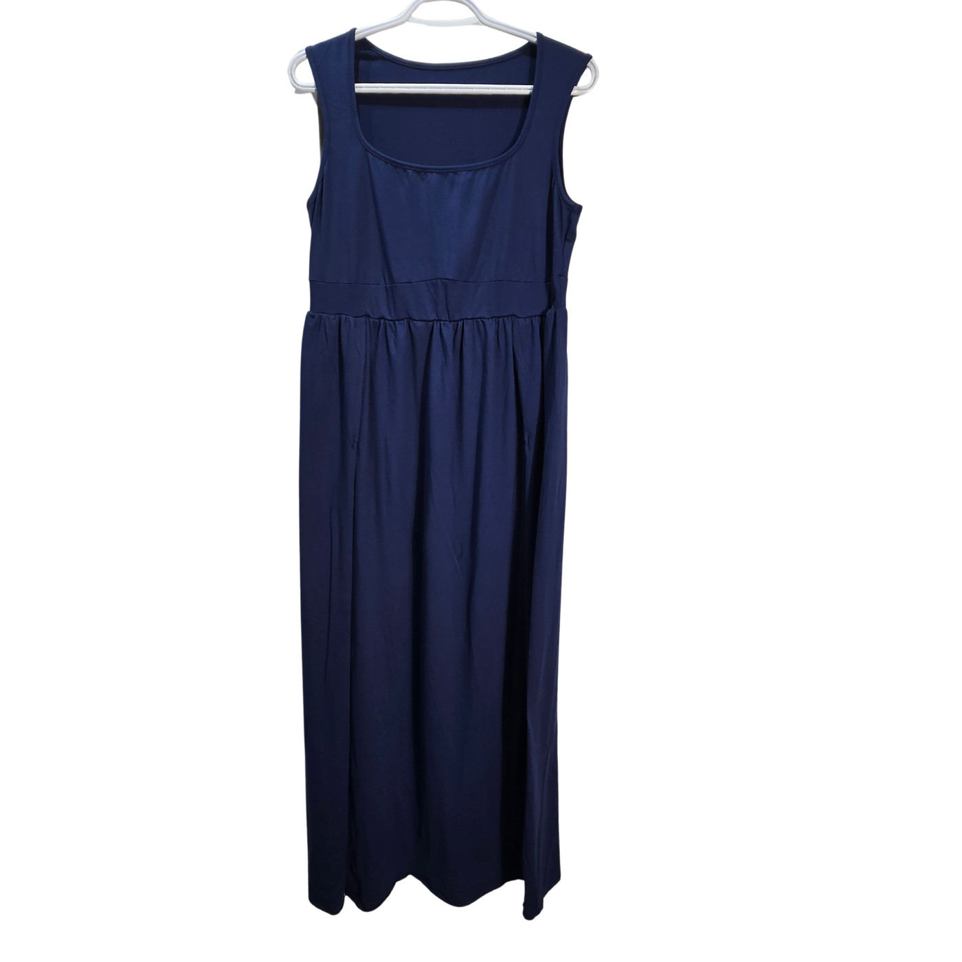NWT | SILUI Navy Blue Sleeveless Maxi Dress | Artistic Dual Side Slits | Sophisticated Scoop Neck | Size XL