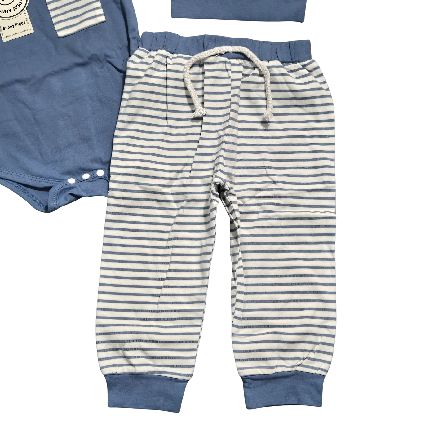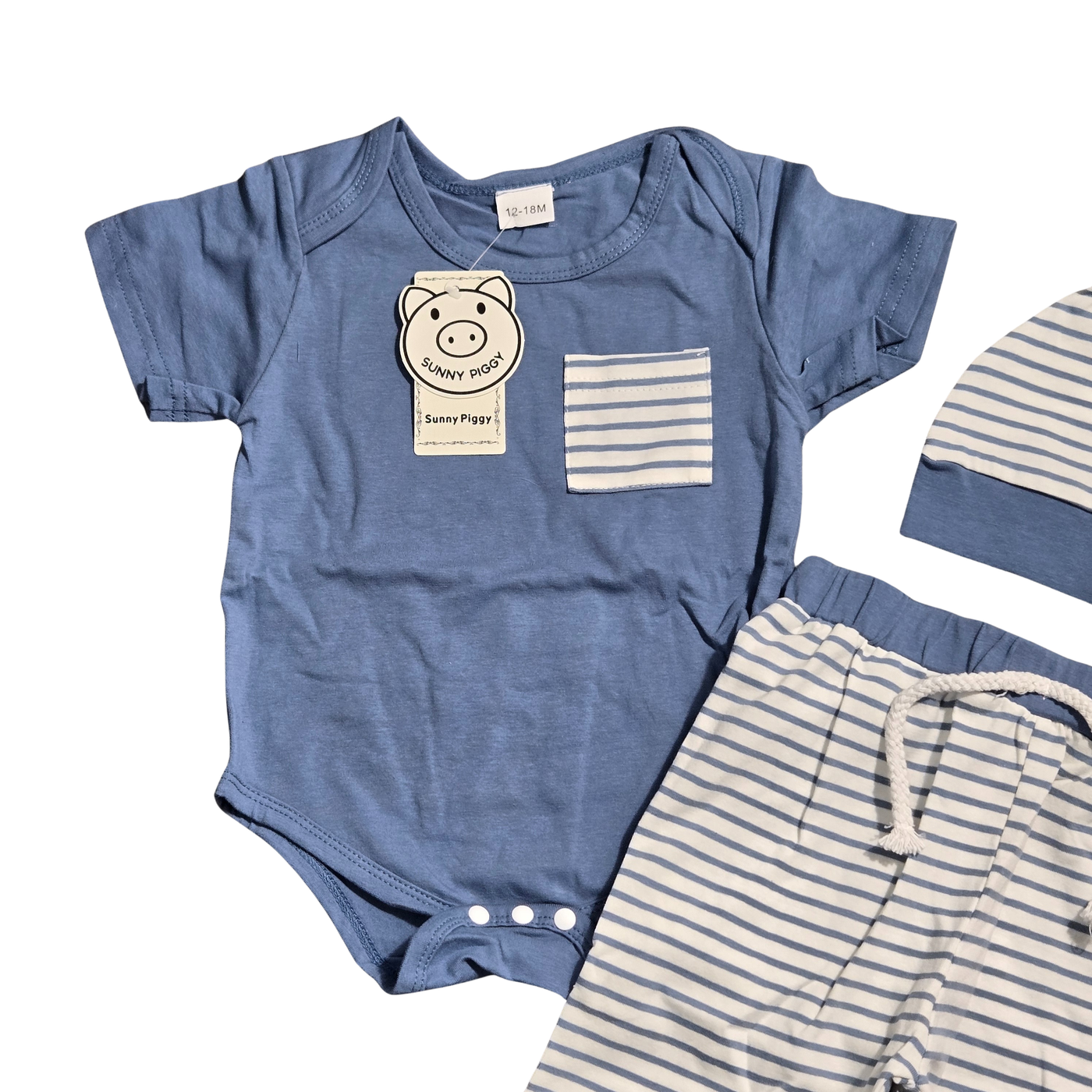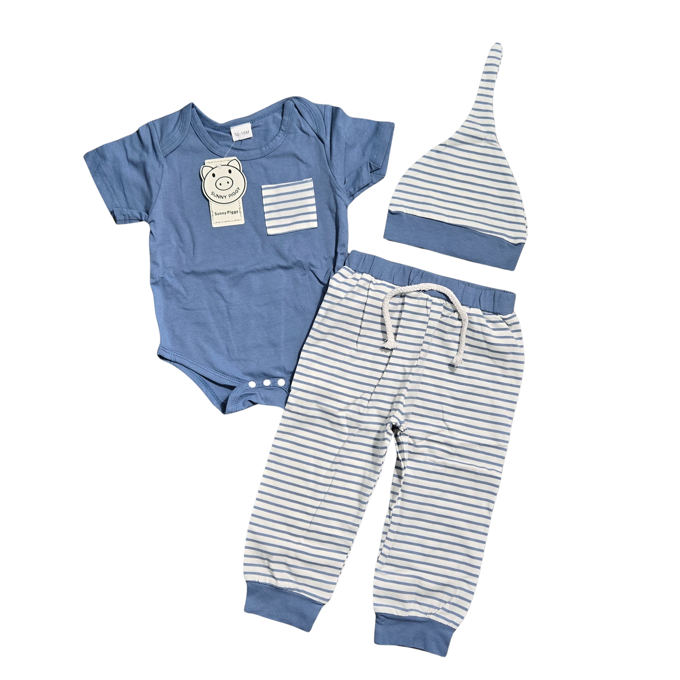 {"id":10908847833281,"title":"NWT | Sunny Pig 3-Piece Striped Outfit | Onesie, Pants \u0026 Hat | 12-18M","handle":"nwt-sunny-pig-3-piece-striped-outfit-onesie-pants-hat-12-18m","description":"\u003ch2 data-path-to-node=\"7\"\u003e🐷 Playful \u0026amp; Coordinated: Sunny Piggy 3-Piece Striped Set\u003c\/h2\u003e\n\u003cp data-path-to-node=\"8\"\u003eDress your little one in effortless style with this adorable three-piece coordinated set from Sunny Piggy. This charming ensemble features a soft blue short-sleeve bodysuit accented by a contrasting striped chest pocket. The set is perfectly completed with matching blue and white horizontal striped jogger-style pants and a coordinating knotted beanie hat for a complete, head-to-toe look. Designed for all-day comfort, the pants feature a flexible elastic waistband with a decorative rope drawstring. Crafted from a breathable and soft cotton-blend jersey, this durable outfit is an ideal choice for playdates, outings, or a thoughtful baby shower gift. 12-18M.\u003c\/p\u003e\n\u003chr data-path-to-node=\"9\"\u003e\n\u003ch3 data-path-to-node=\"10\"\u003eKey Design Details\u003c\/h3\u003e\n\u003cul data-path-to-node=\"11\"\u003e\n\u003cli\u003e\n\u003cp data-path-to-node=\"11,0,0\"\u003e\u003cb data-path-to-node=\"11,0,0\" data-index-in-node=\"0\"\u003eBrand\u003c\/b\u003e: Sunny Piggy.\u003c\/p\u003e\n\u003c\/li\u003e\n\u003cli\u003e\n\u003cp data-path-to-node=\"11,1,0\"\u003e\u003cb data-path-to-node=\"11,1,0\" data-index-in-node=\"0\"\u003eColor\u003c\/b\u003e: Classic \u003cb data-path-to-node=\"11,1,0\" data-index-in-node=\"15\"\u003eSteel Blue\u003c\/b\u003e with \u003cb data-path-to-node=\"11,1,0\" data-index-in-node=\"31\"\u003eWhite Striped\u003c\/b\u003e accents.\u003c\/p\u003e\n\u003c\/li\u003e\n\u003cli\u003e\n\u003cp data-path-to-node=\"11,2,0\"\u003e\u003cb data-path-to-node=\"11,2,0\" data-index-in-node=\"0\"\u003eSet Includes\u003c\/b\u003e:\u003c\/p\u003e\n\u003cul data-path-to-node=\"11,2,1\"\u003e\n\u003cli\u003e\n\u003cp data-path-to-node=\"11,2,1,0,0\"\u003e\u003cb data-path-to-node=\"11,2,1,0,0\" data-index-in-node=\"0\"\u003eGraphic Onesie\u003c\/b\u003e: Features a functional three-snap bottom closure and a striped left-chest pocket.\u003c\/p\u003e\n\u003c\/li\u003e\n\u003cli\u003e\n\u003cp data-path-to-node=\"11,2,1,1,0\"\u003e\u003cb data-path-to-node=\"11,2,1,1,0\" data-index-in-node=\"0\"\u003eStriped Joggers\u003c\/b\u003e: Horizontal striped pattern with cuffed ankles and a decorative front tie.\u003c\/p\u003e\n\u003c\/li\u003e\n\u003cli\u003e\n\u003cp data-path-to-node=\"11,2,1,2,0\"\u003e\u003cb data-path-to-node=\"11,2,1,2,0\" data-index-in-node=\"0\"\u003eKnotted Beanie\u003c\/b\u003e: Matching striped hat designed for a snug and cozy fit.\u003c\/p\u003e\n\u003c\/li\u003e\n\u003c\/ul\u003e\n\u003c\/li\u003e\n\u003cli\u003e\n\u003cp data-path-to-node=\"11,3,0\"\u003e\u003cb data-path-to-node=\"11,3,0\" data-index-in-node=\"0\"\u003eComfort \u0026amp; Fit\u003c\/b\u003e:\u003c\/p\u003e\n\u003cul data-path-to-node=\"11,3,1\"\u003e\n\u003cli\u003e\n\u003cp data-path-to-node=\"11,3,1,0,0\"\u003e\u003cb data-path-to-node=\"11,3,1,0,0\" data-index-in-node=\"0\"\u003eElastic Waistband\u003c\/b\u003e: The pants offer a secure and gentle stretch for easy dressing and movement.\u003c\/p\u003e\n\u003c\/li\u003e\n\u003cli\u003e\n\u003cp data-path-to-node=\"11,3,1,1,0\"\u003e\u003cb data-path-to-node=\"11,3,1,1,0\" data-index-in-node=\"0\"\u003eExpandable Neckline\u003c\/b\u003e: The bodysuit is designed with lap shoulders to allow for stress-free over-the-head changes.\u003c\/p\u003e\n\u003c\/li\u003e\n\u003c\/ul\u003e\n\u003c\/li\u003e\n\u003cli\u003e\n\u003cp data-path-to-node=\"11,4,0\"\u003e\u003cb data-path-to-node=\"11,4,0\" data-index-in-node=\"0\"\u003eFabric Performance\u003c\/b\u003e: Soft-touch jersey material engineered for breathability and a gentle feel against baby's skin.\u003c\/p\u003e\n\u003c\/li\u003e\n\u003c\/ul\u003e\n\u003ch3 data-path-to-node=\"12\"\u003e✨ Item Specifics\u003c\/h3\u003e\n\u003cul data-path-to-node=\"13\"\u003e\n\u003cli\u003e\n\u003cp data-path-to-node=\"13,0,0\"\u003e\u003cb data-path-to-node=\"13,0,0\" data-index-in-node=\"0\"\u003eCondition\u003c\/b\u003e: \u003cb data-path-to-node=\"13,0,0\" data-index-in-node=\"11\"\u003eNWT (New With Tags)\u003c\/b\u003e; brand new and unworn with original Sunny Piggy retail tags attached.\u003c\/p\u003e\n\u003c\/li\u003e\n\u003cli\u003e\n\u003cp data-path-to-node=\"13,1,0\"\u003e\u003cb data-path-to-node=\"13,1,0\" data-index-in-node=\"0\"\u003eSize\u003c\/b\u003e: \u003cb data-path-to-node=\"13,1,0\" data-index-in-node=\"6\"\u003e12-18 Months (12-18M)\u003c\/b\u003e.\u003c\/p\u003e\n\u003c\/li\u003e\n\u003cli\u003e\n\u003cp data-path-to-node=\"13,2,0\"\u003e\u003cb data-path-to-node=\"13,2,0\" data-index-in-node=\"0\"\u003eStyle\u003c\/b\u003e: 3-Piece Outfit Set \/ Toddler Jogger Set \/ Graphic Bodysuit.\u003c\/p\u003e\n\u003c\/li\u003e\n\u003cli\u003e\n\u003cp data-path-to-node=\"13,3,0\"\u003e\u003cb data-path-to-node=\"13,3,0\" data-index-in-node=\"0\"\u003eVibe\u003c\/b\u003e: Playful, Coordinated, Modern, Comfortable.\u003c\/p\u003e\n\u003c\/li\u003e\n\u003c\/ul\u003e","published_at":"2026-02-08T09:35:36-05:00","created_at":"2026-02-08T09:35:34-05:00","vendor":"Tammy's Treasures","type":"","tags":["Baby Boy Outfits"],"price":1500,"price_min":1500,"price_max":1500,"available":true,"price_varies":false,"compare_at_price":null,"compare_at_price_min":0,"compare_at_price_max":0,"compare_at_price_varies":false,"variants":[{"id":49968237936833,"title":"Default Title","option1":"Default Title","option2":null,"option3":null,"sku":"JJ-1160","requires_shipping":true,"taxable":true,"featured_image":null,"available":true,"name":"NWT | Sunny Pig 3-Piece Striped Outfit | Onesie, Pants \u0026 Hat | 12-18M","public_title":null,"options":["Default Title"],"price":1500,"weight":157,"compare_at_price":null,"inventory_management":"shopify","barcode":"","requ