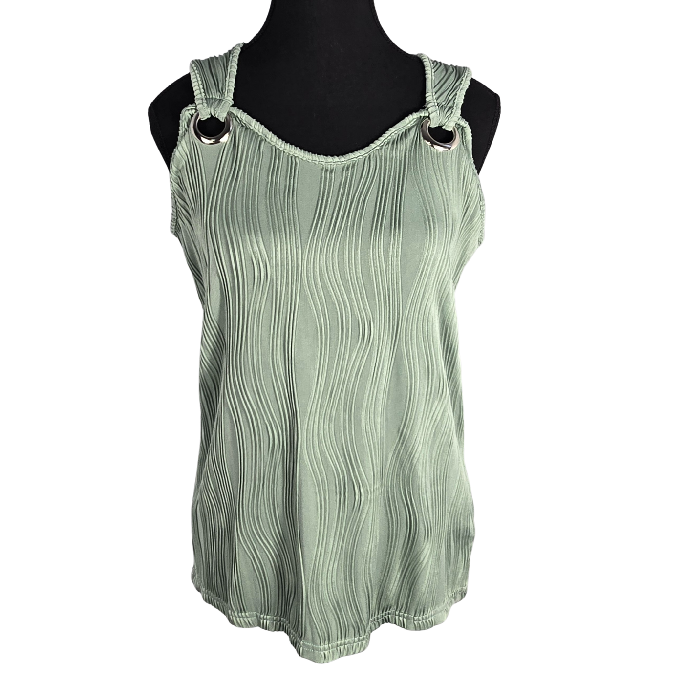 {"id":10892629049537,"title":"NWOT Sage Green Plissé Keyhole Tank Top with Silver Ring Hardware | Medium","handle":"nwot-sage-green-plisse-keyhole-tank-top-with-silver-ring-hardware-medium","description":"\u003ch2 data-path-to-node=\"7\"\u003e🌿 Elegant Sage Green Plissé Texture Tank\u003c\/h2\u003e\n\u003cp data-path-to-node=\"8\"\u003eElevate your seasonal wardrobe with this sophisticated sage green tank top. This piece is defined by its stunning plissé (pleated) texture that features flowing, wave-like vertical ridges for a high-end boutique feel. The modern design is accented with a stylish keyhole neckline and unique double-strap details held together by polished silver-tone metal rings at the shoulders. Designed with a comfortable sleeveless silhouette and a subtle gathered hem, this versatile top offers a relaxed yet polished fit that pairs perfectly with tailored trousers or your favorite denim. Medium.\u003c\/p\u003e\n\u003chr data-path-to-node=\"9\"\u003e\n\u003ch3 data-path-to-node=\"10\"\u003eKey Design Details\u003c\/h3\u003e\n\u003cul data-path-to-node=\"11\"\u003e\n\u003cli\u003e\n\u003cp data-path-to-node=\"11,0,0\"\u003e\u003cb data-path-to-node=\"11,0,0\" data-index-in-node=\"0\"\u003eColor\u003c\/b\u003e: Soft Sage Green \/ Dusty Mint.\u003c\/p\u003e\n\u003c\/li\u003e\n\u003cli\u003e\n\u003cp data-path-to-node=\"11,1,0\"\u003e\u003cb data-path-to-node=\"11,1,0\" data-index-in-node=\"0\"\u003eTexture\u003c\/b\u003e: Premium \u003cb data-path-to-node=\"11,1,0\" data-index-in-node=\"17\"\u003eplissé knit\u003c\/b\u003e with allover vertical pleating for added depth and dimension.\u003c\/p\u003e\n\u003c\/li\u003e\n\u003cli\u003e\n\u003cp data-path-to-node=\"11,2,0\"\u003e\u003cb data-path-to-node=\"11,2,0\" data-index-in-node=\"0\"\u003eHardware\u003c\/b\u003e: Features four polished \u003cb data-path-to-node=\"11,2,0\" data-index-in-node=\"33\"\u003esilver-tone metal grommets\/rings\u003c\/b\u003e at the shoulder straps.\u003c\/p\u003e\n\u003c\/li\u003e\n\u003cli\u003e\n\u003cp data-path-to-node=\"11,3,0\"\u003e\u003cb data-path-to-node=\"11,3,0\" data-index-in-node=\"0\"\u003eNeckline\u003c\/b\u003e: Chic scoop neckline with a front keyhole cutout.\u003c\/p\u003e\n\u003c\/li\u003e\n\u003cli\u003e\n\u003cp data-path-to-node=\"11,4,0\"\u003e\u003cb data-path-to-node=\"11,4,0\" data-index-in-node=\"0\"\u003eSleeve Style\u003c\/b\u003e: Sleeveless with fashionable split double straps.\u003c\/p\u003e\n\u003c\/li\u003e\n\u003cli\u003e\n\u003cp data-path-to-node=\"11,5,0\"\u003e\u003cb data-path-to-node=\"11,5,0\" data-index-in-node=\"0\"\u003eHem\u003c\/b\u003e: Finished with a gentle gathered effect for a flattering, draped look.\u003c\/p\u003e\n\u003c\/li\u003e\n\u003c\/ul\u003e\n\u003ch3 data-path-to-node=\"12\"\u003e✨ Item Specifics\u003c\/h3\u003e\n\u003cul data-path-to-node=\"13\"\u003e\n\u003cli\u003e\n\u003cp data-path-to-node=\"13,0,0\"\u003e\u003cb data-path-to-node=\"13,0,0\" data-index-in-node=\"0\"\u003eCondition\u003c\/b\u003e: \u003cb data-path-to-node=\"13,0,0\" data-index-in-node=\"11\"\u003eNWOT (New Without Tags)\u003c\/b\u003e; item is brand new and in pristine, unworn condition.\u003c\/p\u003e\n\u003c\/li\u003e\n\u003cli\u003e\n\u003cp data-path-to-node=\"13,1,0\"\u003e\u003cb data-path-to-node=\"13,1,0\" data-index-in-node=\"0\"\u003eSize\u003c\/b\u003e: \u003cb data-path-to-node=\"13,1,0\" data-index-in-node=\"6\"\u003eMedium (M)\u003c\/b\u003e.\u003c\/p\u003e\n\u003c\/li\u003e\n\u003cli\u003e\n\u003cp data-path-to-node=\"13,2,0\"\u003e\u003cb data-path-to-node=\"13,2,0\" data-index-in-node=\"0\"\u003eStyle\u003c\/b\u003e: Plissé Tank \/ Keyhole Blouse \/ Textured Summer Top.\u003c\/p\u003e\n\u003c\/li\u003e\n\u003cli\u003e\n\u003cp data-path-to-node=\"13,3,0\"\u003e\u003cb data-path-to-node=\"13,3,0\" data-index-in-node=\"0\"\u003eVibe\u003c\/b\u003e: Contemporary, Sophisticated, Minimalist, Boutique.\u003c\/p\u003e\n\u003c\/li\u003e\n\u003c\/ul\u003e","published_at":"2026-01-19T19:30:49-05:00","created_at":"2026-01-19T19:30:48-05:00","vendor":"Tammy's Treasures","type":"","tags":["Women's Tank Tops"],"price":1800,"price_min":1800,"price_max":1800,"available":true,"price_varies":false,"compare_at_price":null,"compare_at_price_min":0,"compare_at_price_max":0,"compare_at_price_varies":false,"variants":[{"id":49918894538945,"title":"Default Title","option1":"Default Title","option2":null,"option3":null,"sku":"Y-","requires_shipping":true,"taxable":true,"featured_image":null,"available":true,"name":"NWOT Sage Green Plissé Keyhole Tank Top with Silver Ring Hardware | Medium","public_title":null,"options":["Default Title"],"price":1800,"weight":178,"compare_at_price":null,"inventory_management":"shopify","barcode":"","requires_selling_plan":false,"selling_plan_allocations":[]}],"images":["\/\/tammystreasures.ca\/cdn\/shop\/files\/Untitleddesign-2026-01-19T192559.035.png?v=1768868960","\/\/tammystreasures.ca\/cdn\/shop\/files\/Untitleddesign-2026-01-19T192642.035.png?v=1768868960","\/\/tammystreasures.ca\/cdn\/shop\/files\/Untitleddesign-2026-01-19T192707.426.png?v=1768868960","\/\/tammystreasures.ca\/cdn\/shop\/files\/Untitleddesign-2026-01-19T192720.889.png?v=1768868960","\/\/tammystreasures.ca\/cdn\/shop\/files\/Untitleddesign-2026-01-19T192656.353.png?v=1768868961"],"featured_image":"\/\/tammystreasures.ca\/cdn\/shop\/files\/Untitleddesign-2026-01-19T192559.035.png?v=1768868960","options":["Title"],"media":[{"alt":null,"id":40773481169089,"position":1,"preview_image":{"aspect_ratio":1.0,"height":2048,"width":2048,"src":"\/\/tammystreasures.ca\/cdn\/shop\/files\/Untitleddesign-2026-01-19T192559.035.png?v=1768868960"},"aspect_ratio":1.0,"height":2048,"media_type":"image","src":"\/\/tammystreasures.ca\/cdn\/shop\/files\/Untitleddesign-2026-01-19T192559.035.png?v=1768868960","width":2048},{"alt":null,"id":40773481136321,"position":2,"preview_image":{"aspect_ratio":1.0,"height":2048,"width":2048,"src":"\/\/tammystreasures.ca\/cdn\/shop\/files\/Untitle