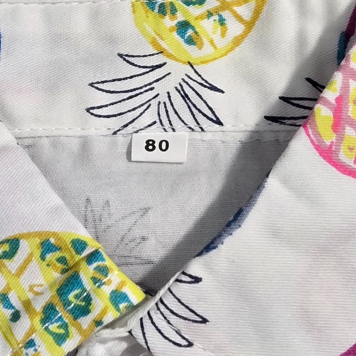 • Color: Crisp White base with a vibrant multi-color pineapple pattern.
