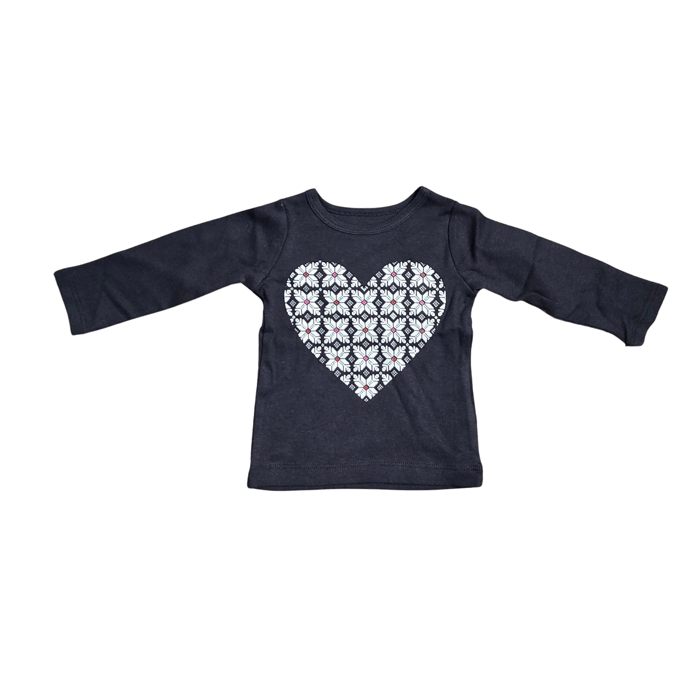 NWT | Carter's Baby Girl Fair Isle Heart Graphic Tee | Artistic Nordic Winter Motif | Navy Blue | Size 6 Months