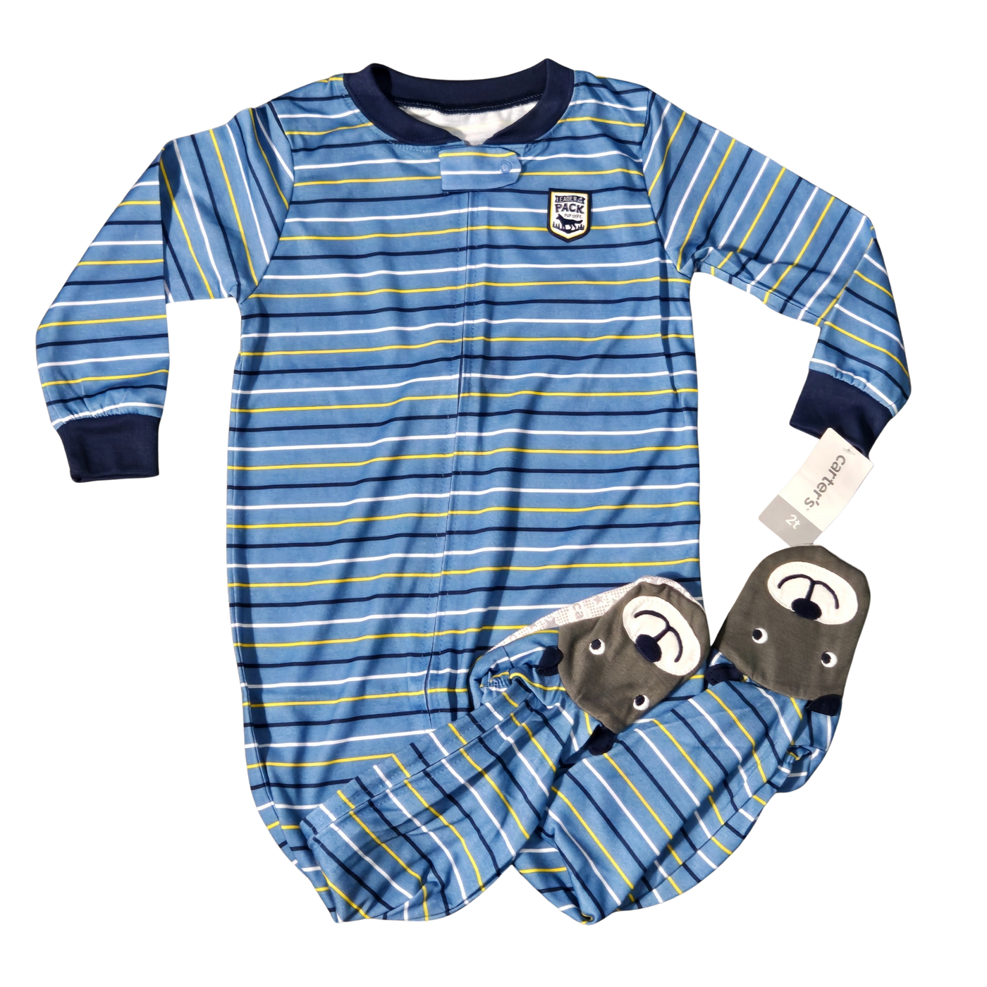 {"id":10887085260993,"title":"NWT Carter's Boy's Striped Footed Pajama Onesie | Blue \u0026 Yellow Sleeper | 2T","handle":"nwt-carters-boys-striped-footed-pajama-onesie-blue-yellow-sleeper-2t","description":"\u003ch2 data-path-to-node=\"7\"\u003e🌙 Cozy \"Leader of the Pack\" Footed Sleeper\u003c\/h2\u003e\n\u003cp data-path-to-node=\"8\"\u003eEnsure a comfortable night's sleep with this adorable footed pajama onesie from Carter's. Featuring a classic horizontal stripe pattern in shades of blue, white, and yellow, this sleeper is accented with a \"Leader of the Pack\" dog patch on the chest. The whimsical footies are designed with cute dog faces, adding a playful touch to bedtime. Crafted from flame-resistant fabric for safety, this one-piece sleeper features a full-length zipper with a safety tab to protect little chins. 2T.\u003c\/p\u003e\n\u003chr data-path-to-node=\"9\"\u003e\n\u003ch3 data-path-to-node=\"10\"\u003eKey Design Details\u003c\/h3\u003e\n\u003cul data-path-to-node=\"11\"\u003e\n\u003cli\u003e\n\u003cp data-path-to-node=\"11,0,0\"\u003e\u003cb data-path-to-node=\"11,0,0\" data-index-in-node=\"0\"\u003eBrand\u003c\/b\u003e: Carter's\u003c\/p\u003e\n\u003c\/li\u003e\n\u003cli\u003e\n\u003cp data-path-to-node=\"11,1,0\"\u003e\u003cb data-path-to-node=\"11,1,0\" data-index-in-node=\"0\"\u003ePattern\u003c\/b\u003e: Multi-tonal horizontal stripes in blue, yellow, and white.\u003c\/p\u003e\n\u003c\/li\u003e\n\u003cli\u003e\n\u003cp data-path-to-node=\"11,2,0\"\u003e\u003cb data-path-to-node=\"11,2,0\" data-index-in-node=\"0\"\u003eGraphic\u003c\/b\u003e: \"Leader of the Pack\" embroidered patch on the upper left chest.\u003c\/p\u003e\n\u003c\/li\u003e\n\u003cli\u003e\n\u003cp data-path-to-node=\"11,3,0\"\u003e\u003cb data-path-to-node=\"11,3,0\" data-index-in-node=\"0\"\u003eFooties\u003c\/b\u003e: Built-in footies featuring grey and white dog faces with floppy ear details.\u003c\/p\u003e\n\u003c\/li\u003e\n\u003cli\u003e\n\u003cp data-path-to-node=\"11,4,0\"\u003e\u003cb data-path-to-node=\"11,4,0\" data-index-in-node=\"0\"\u003eSafety Features\u003c\/b\u003e:\u003c\/p\u003e\n\u003cul data-path-to-node=\"11,4,1\"\u003e\n\u003cli\u003e\n\u003cp data-path-to-node=\"11,4,1,0,0\"\u003e\u003cb data-path-to-node=\"11,4,1,0,0\" data-index-in-node=\"0\"\u003eFlame Resistant\u003c\/b\u003e: Fabric is chemically treated to be flame resistant for child safety.\u003c\/p\u003e\n\u003c\/li\u003e\n\u003cli\u003e\n\u003cp data-path-to-node=\"11,4,1,1,0\"\u003e\u003cb data-path-to-node=\"11,4,1,1,0\" data-index-in-node=\"0\"\u003eZipper Guard\u003c\/b\u003e: Features a snap-over tab at the neckline to protect baby's skin from the zipper.\u003c\/p\u003e\n\u003c\/li\u003e\n\u003c\/ul\u003e\n\u003c\/li\u003e\n\u003cli\u003e\n\u003cp data-path-to-node=\"11,5,0\"\u003e\u003cb data-path-to-node=\"11,5,0\" data-index-in-node=\"0\"\u003eClosure\u003c\/b\u003e: Full-length front zipper for easy dressing and diaper changes.\u003c\/p\u003e\n\u003c\/li\u003e\n\u003cli\u003e\n\u003cp data-path-to-node=\"11,6,0\"\u003e\u003cb data-path-to-node=\"11,6,0\" data-index-in-node=\"0\"\u003eCuffs\u003c\/b\u003e: Contrast navy blue ribbed knit cuffs at the wrists for a snug fit.\u003c\/p\u003e\n\u003c\/li\u003e\n\u003c\/ul\u003e\n\u003ch3 data-path-to-node=\"12\"\u003e✨ Item Specifics\u003c\/h3\u003e\n\u003cul data-path-to-node=\"13\"\u003e\n\u003cli\u003e\n\u003cp data-path-to-node=\"13,0,0\"\u003e\u003cb data-path-to-node=\"13,0,0\" data-index-in-node=\"0\"\u003eCondition\u003c\/b\u003e: \u003cb data-path-to-node=\"13,0,0\" data-index-in-node=\"11\"\u003eNWT (New With Tags)\u003c\/b\u003e; item is brand new and unworn with original retail tags attached.\u003c\/p\u003e\n\u003c\/li\u003e\n\u003cli\u003e\n\u003cp data-path-to-node=\"13,1,0\"\u003e\u003cb data-path-to-node=\"13,1,0\" data-index-in-node=\"0\"\u003eSize\u003c\/b\u003e: \u003cb data-path-to-node=\"13,1,0\" data-index-in-node=\"6\"\u003e2T (Toddler Boy)\u003c\/b\u003e\u003c\/p\u003e\n\u003c\/li\u003e\n\u003cli\u003e\n\u003cp data-path-to-node=\"13,2,0\"\u003e\u003cb data-path-to-node=\"13,2,0\" data-index-in-node=\"0\"\u003eStyle\u003c\/b\u003e: Footed Pajamas \/ Sleeper \/ One-Piece \/ Union Suit\u003c\/p\u003e\n\u003c\/li\u003e\n\u003cli\u003e\n\u003cp data-path-to-node=\"13,3,0\"\u003e\u003cb data-path-to-node=\"13,3,0\" data-index-in-node=\"0\"\u003eVibe\u003c\/b\u003e: Cozy, Playful, Classic Bedtime Wear\u003c\/p\u003e\n\u003c\/li\u003e\n\u003c\/ul\u003e","published_at":"2026-01-13T17:11:54-05:00","created_at":"2026-01-13T17:11:53-05:00","vendor":"Tammy's Treasures","type":"","tags":["Pajamas"],"price":1000,"price_min":1000,"price_max":1000,"available":true,"price_varies":false,"compare_at_price":null,"compare_at_price_min":0,"compare_at_price_max":0,"compare_at_price_varies":false,"variants":[{"id":49902446117057,"title":"Default Title","option1":"Default Title","option2":null,"option3":null,"sku":"Y-782","requires_shipping":true,"taxable":true,"featured_image":null,"available":true,"name":"NWT Carter's Boy's Striped Footed Pajama Onesie | Blue \u0026 Yellow Sleeper | 2T","public_title":null,"options":["Default Title"],"price":1000,"weight":165,"compare_at_price":null,"inventory_management":"shopify","barcode":"","requires_selling_plan":false,"selling_plan_allocations":[]}],"images":["\/\/tammystreasures.ca\/cdn\/shop\/files\/Untitleddesign-2026-01-13T170201.029.png?v=1768342251","\/\/tammystreasures.ca\/cdn\/shop\/files\/Untitleddesign-2026-01-13T170222.479.png?v=1768342251","\/\/tammystreasures.ca\/cdn\/shop\/files\/Untitleddesign-2026-01-13T170238.268.png?v=1768342251"],"featured_image":"\/\/tammystreasures.ca\/cdn\/shop\/files\/Untitleddesign-2026-01-13T170201.029.png?v=1768342251","options":["Title"],"media":[{"alt":null,"id":40724449001665,"position":1,"preview_image":{"aspect_ratio":1.0,"height":2048,"width":2048,"src":"\/\/tammystreasures.ca\/cdn\/shop\/files\/Untitleddesign-2026-01-13T170201.029.png?v=1768342251"},"aspect_ratio":1.0,"h